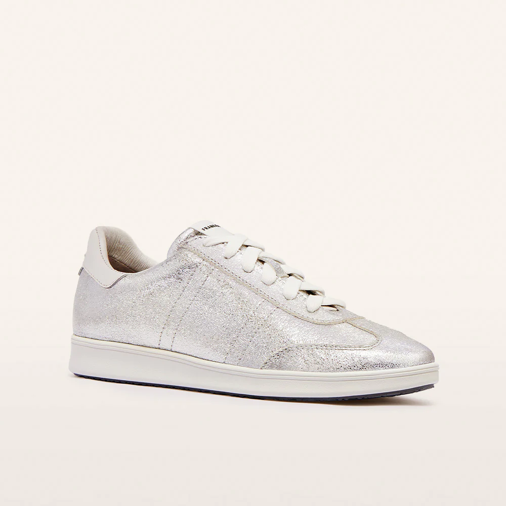 Turn heads with the Drew sneaker in striking Silver Crackle. Featuring a standout metallic foil over a textile upper, this shoe offers both style and comfort with its triple-layered support and cushioning system for a personalised fit. Lightweight and inspired by court style, Drew effortlessly blends chic design with functional performance. Elevate your sneaker collection with this bold statement piece.