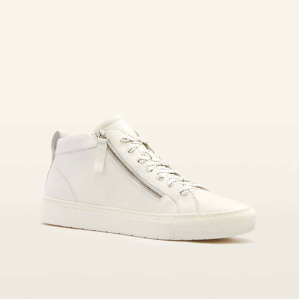 Meet Morgan, the star player of any sneaker collection, sporting staple White Tumbled. A fashion-forward iteration of the classic high-top casual sneaker, Morgan features a triple layer support and cushion system and custom fitting options. Finished with statement hardware, simply zip Morgan on or off for style on the go, no undoing laces required. Handcrafted leather and strategically placed cushioning also equip Morgan for all-day comfort and style.