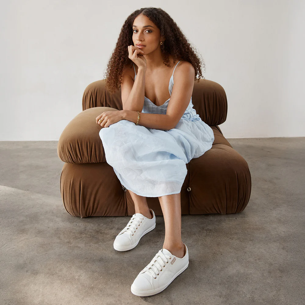 Nat’s cult-followed design has been reimagined in classic White Tumbled. Featuring intentionally placed cushioning, ample support, and luxe leather details, Nat ensures its position as your go-to pair and its status as a signature sneaker style. For a custom approach to style, this iconic pair has an elastic gusset that enables them to be worn with or without laces, or you can customise your own with our array of laces in recycled cotton, statement prints, and shimmering satins.